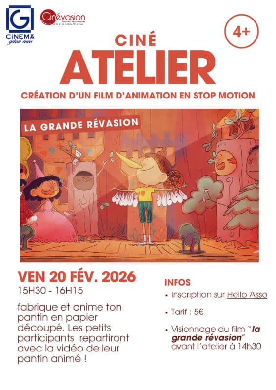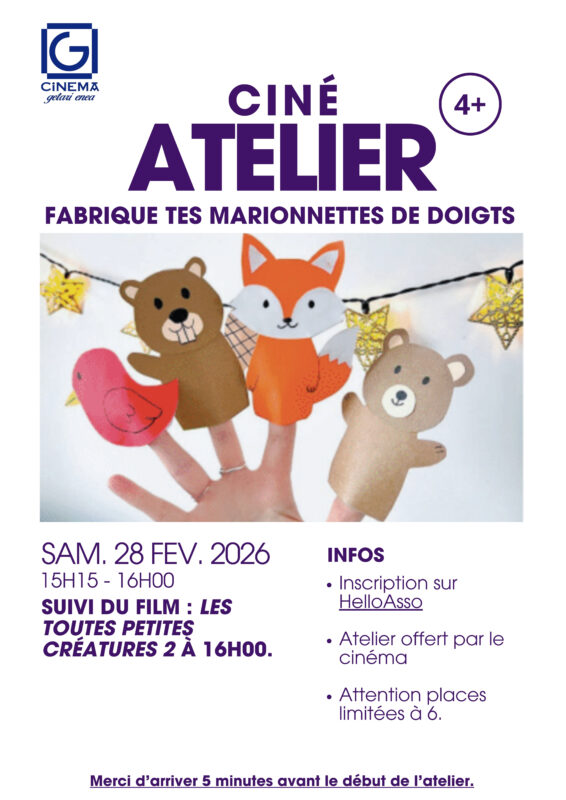 Des ateliers pour les enfants sont également proposés autour du stop motion et des arts plastiques ainsi qu’une programmation adaptée dès 3 ans, pour partager le plaisir du cinéma en famille.