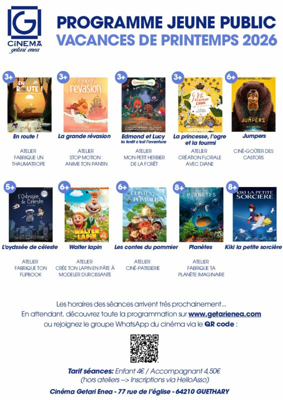 Cette semaine, le cinéma Getari Enea continue d’être un lieu culturel vivant et convivial, au cœur de Guéthary, ouvert tous les jours!