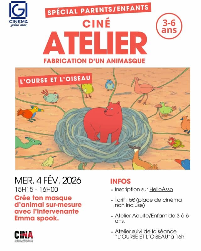 Des ateliers pour les enfants sont également proposés autour du stop motion et des arts plastiques ainsi qu’une programmation adaptée dès 3 ans, pour partager le plaisir du cinéma en famille.