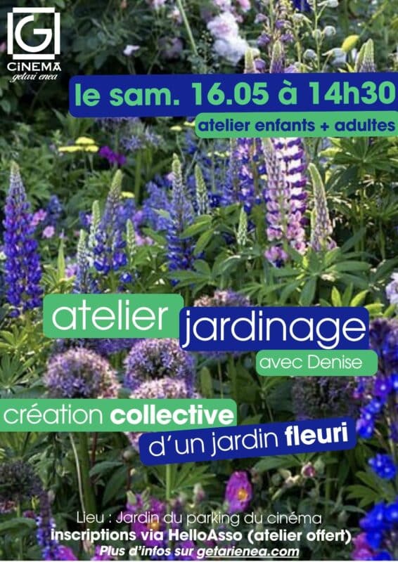 Le cinéma Getari Enea vous propose un atelier de jardinage participatif, ouvert aux enfants (tous âges, accompagnés ou non) et aux adultes.