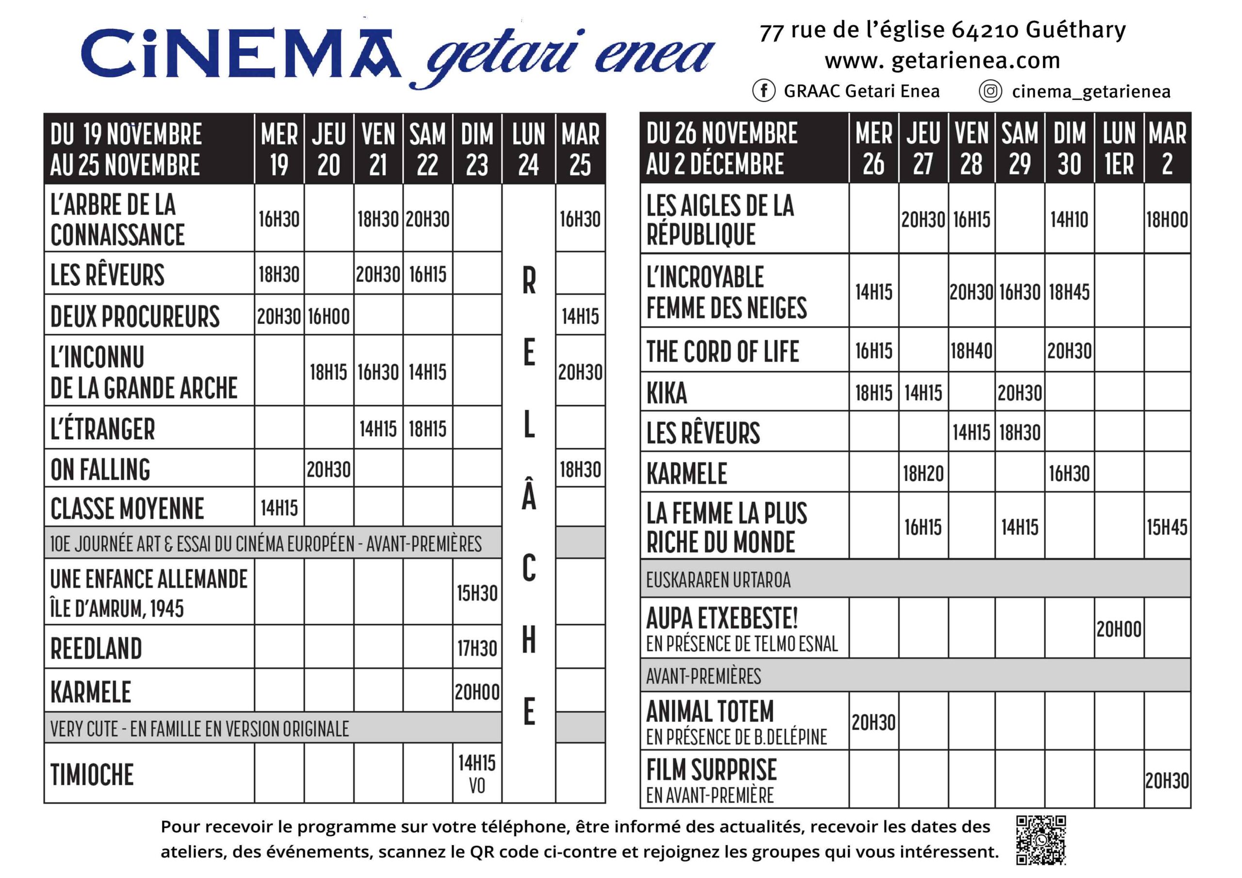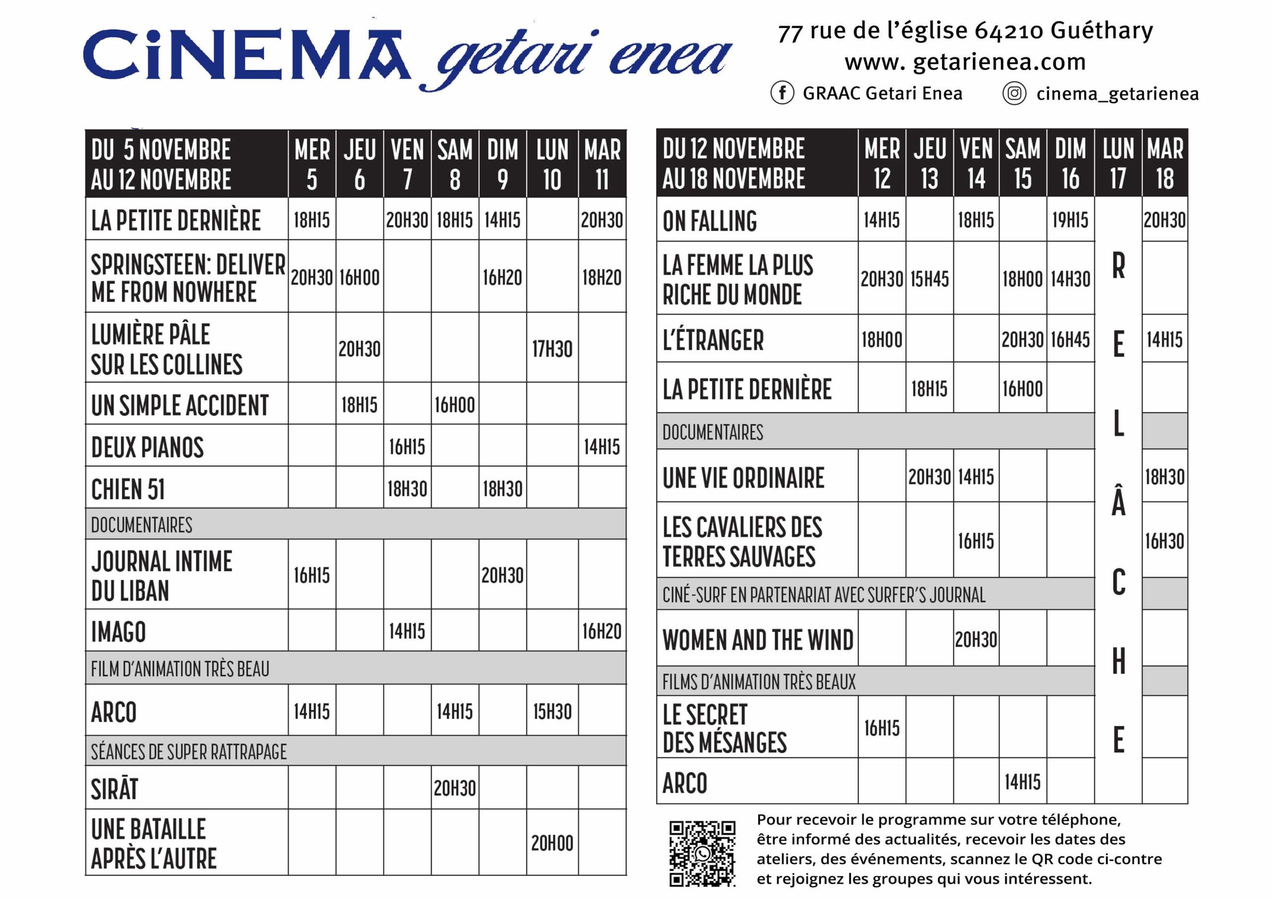 Réouvert en février 2020 après 20 ans de fermeture, 4 ans de réflexion et 1 an de travaux, Getari Enea est un lieu culturel adossé à un cinéma art & essai avec des sorties nationales, des films de patrimoine, des films rares, des films indépendants mais aussi des projets artistiques sonores à écouter dans de parfaites conditions. Son café associatif est ouvert aux horaires des séances.